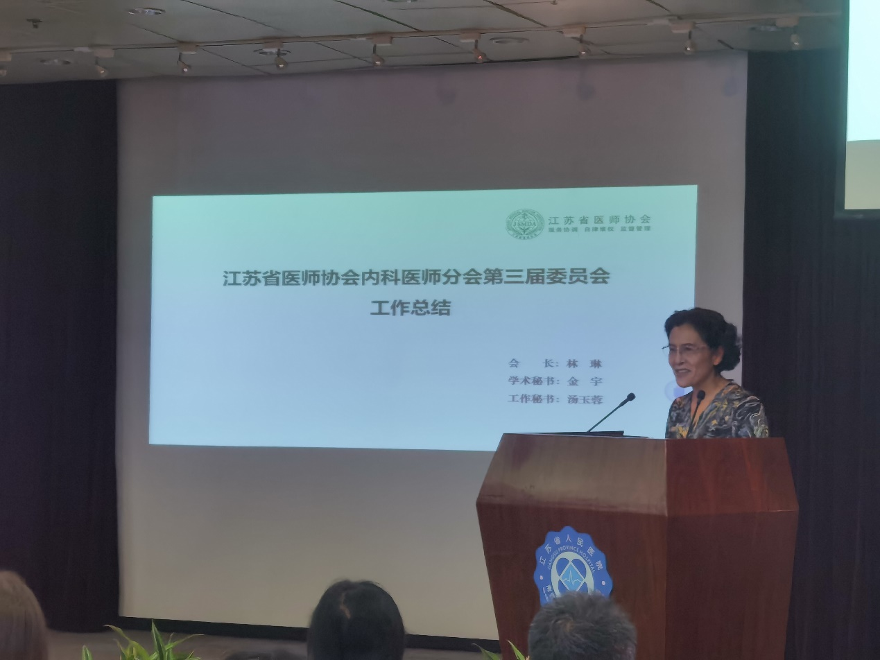 首先,内科医师分会第三届委员会会长林琳教授总结分会所开展的工作,在面对波及全球的新冠病毒疫情时,广大内科医师表现出了一贯的大局观和极高的专业素养,负重前行,奋斗不懈,在抗疫一线以实际行动向祖国人民上交了一份完美的答卷。同时在疫情期间,分会克服重重困难,通过线上、线下各种方式,继续向基层医务人员传经送宝,向广大群众科普医学知识,把“内科人”的责任与担当谱写在了祖国大地上。