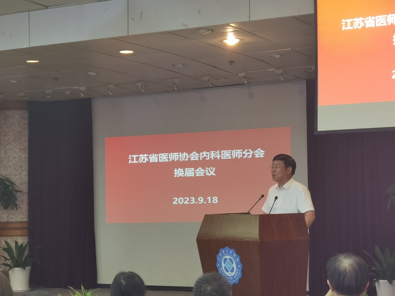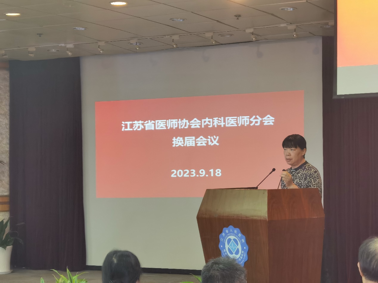 2023年9月18日下午,江苏省医师协会内科医师分会换届会议在南京举行。江苏省医师协会呼吸医师分会第四届委员会委员候选人参加会议,江苏省医师协会副会长兼秘书长刘彦群教授出席会议。