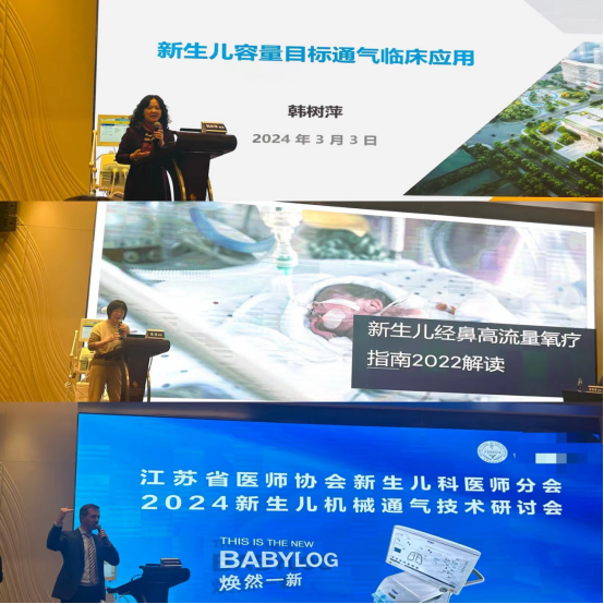 当日下午,江苏省医师协会新生儿科医师分会举行了主题为“2024新生儿机械通气技术研讨会”的学术沙龙。韩树萍教授和程锐教授先后做了《新生儿容量目标通气临床应用》和《新生儿经鼻高流量氧疗指南2022解读》的专题讲座。会议现场氛围热烈,与会者们积极提问发言,交流各自工作领域呼吸机应用心得。此次学术沙龙不仅为大家提供了一个高质量的学术交流平台,还进一步拓展了与会者的视野,促进了不同专科领域之间的合作与交流。