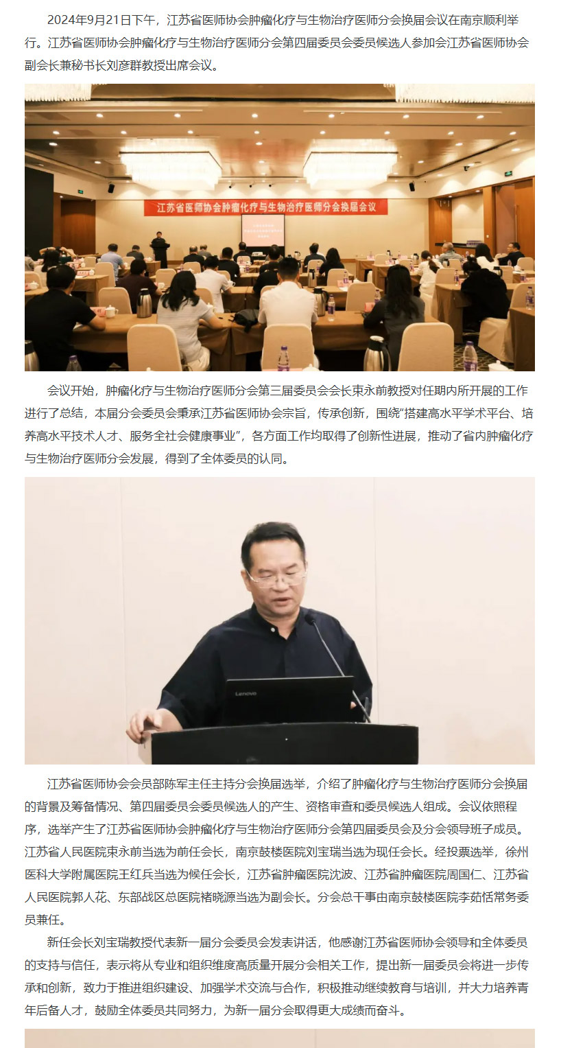 【分会动态】江苏省医师协会肿瘤化疗与生物治疗医师分会换届会议顺利举行