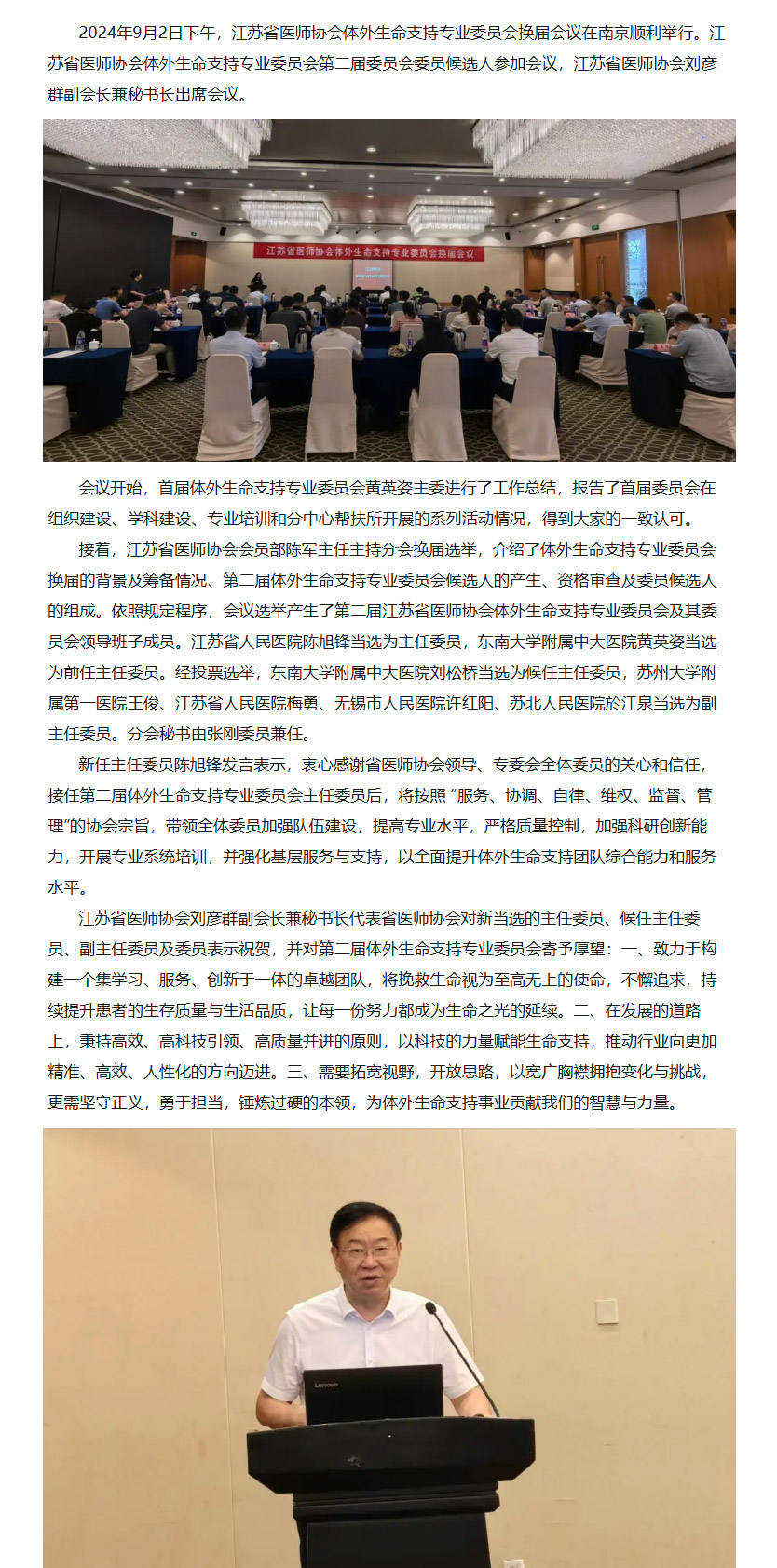 【分会动态】江苏省医师协会体外生命支持专业委员会换届会议顺利举行