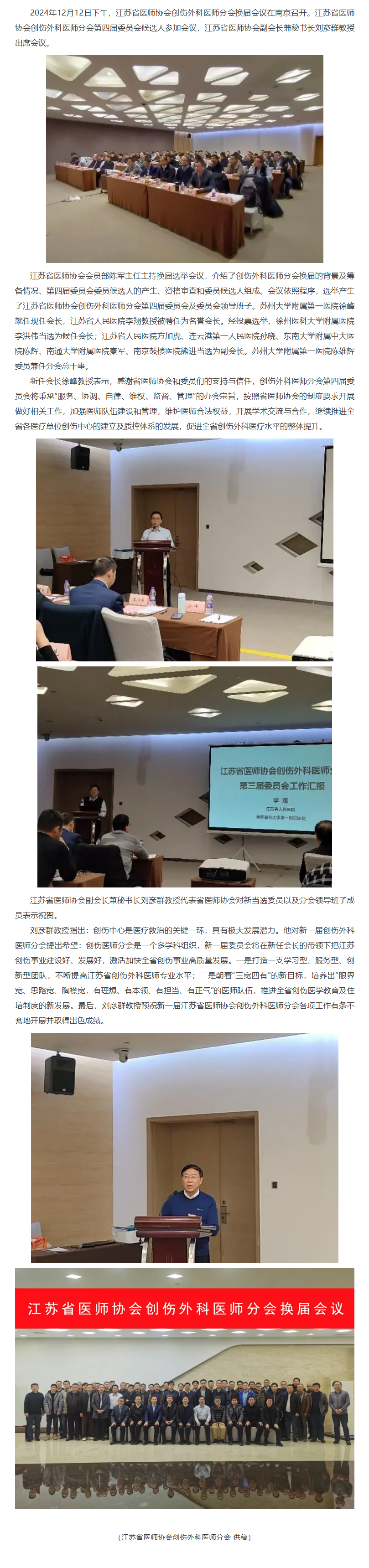 【分会动态】江苏省医师协会创伤外科医师分会换届会议顺利举行
