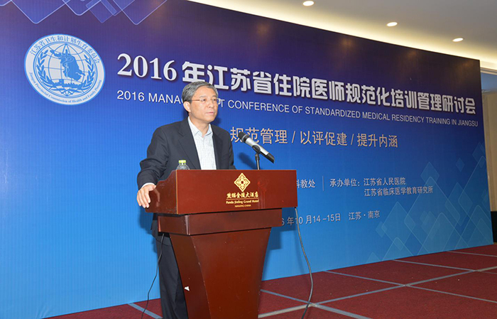 2016年10月14-15日,由江苏省卫生和计划生育委员会主办、江苏省人民医院承办的“2016年江苏省住院医师规范化培训管理研讨会”在南京顺利召开。此次研讨会围绕“规范管理、以评促建、提升内涵”主题展开,中国医师协会齐学进副会长以“我国住培制度的建设、管理与运行”为题进行授课。参与国家基地评估并担任组长的多位专家针对全国及我省住培现场评估中发现的问题,交流了经验与体会。