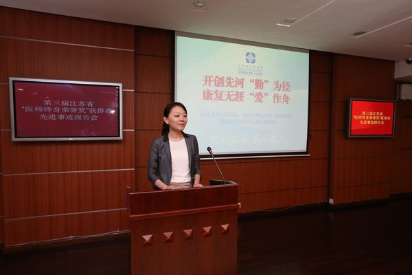先进事迹报告会上,5位报告者声情并茂地向与会代表讲述了中国康复医学研究会创始人之一、江苏省人民医院周士枋,“侍氏皮瓣”创始人、南通大学附属医院侍德,成功研制新型人工镫骨材料的南京鼓楼医院陈兆和,全国名中医江苏省中医院朱秉宜和为我国情感性精神病规范化诊疗作出开拓性贡献的镇江市第五人民医院严善明等5位老专家的先进事迹,感动了所有与会代表。