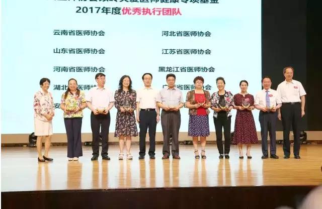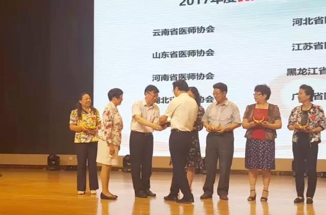 在会议上,杨民副会长、吴以岭院士和陆军副会长为表现优异的基金工作委员会优秀团队及基金优秀组织者颁发了证书,并予以表扬。其中,江苏省医师协会荣获以岭关爱医师健康专项基金2017年度优秀执行团队称号,江苏省医师协会副会长兼秘书长刘彦群同志到会并领奖。