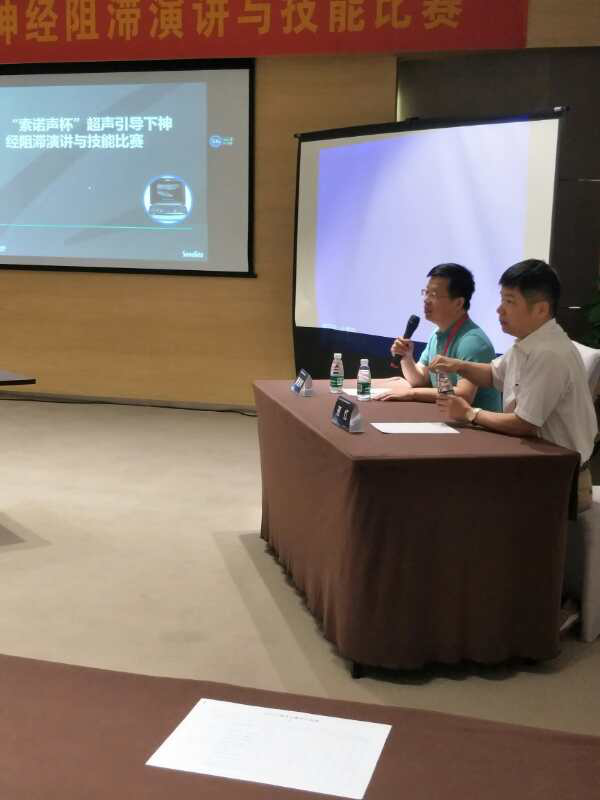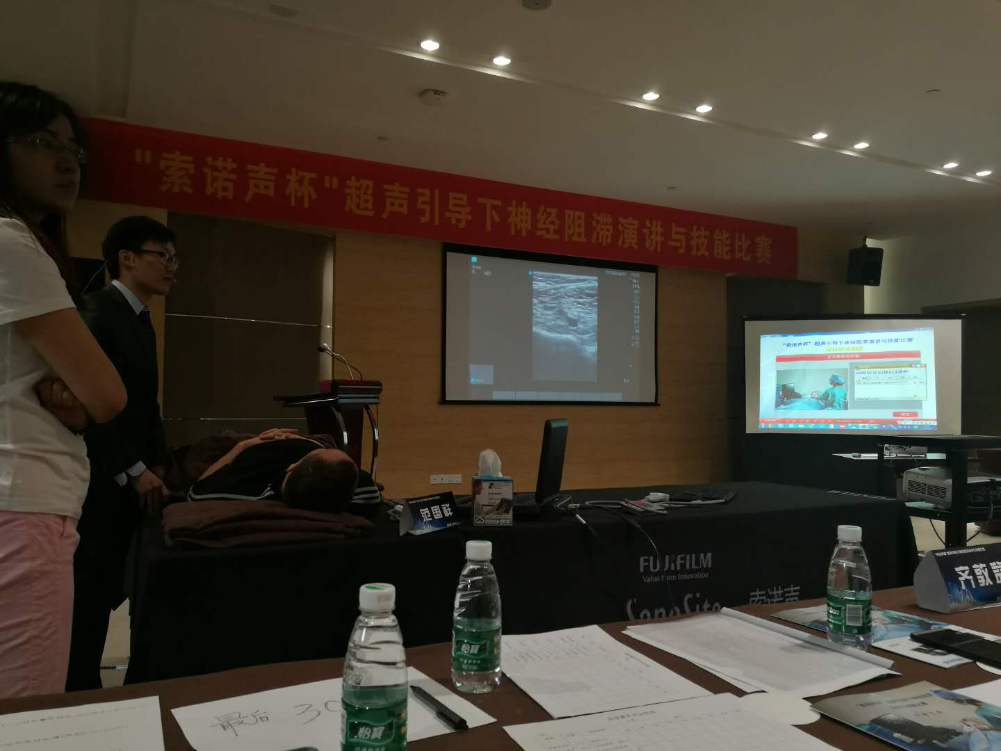 第六分会场也有精彩的比赛。“索诺声杯“超声引导下神经阻滞演讲与技能比赛分为演讲与现场技能操作两部分。出席本次比赛的评委有谢红教授、朱江教授、顾连兵教授、鲍红光教授、阚明秀教授、王志萍教授、邱晓东教授、齐敦益教授,参赛选手共9名。