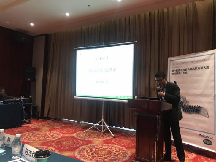 会议上半场,沈忆新教授以“创伤后脊柱侧弯的治疗”为主题,结合病例讲解脊柱侧弯治疗的独特理解;刘军教授分享了脊柱术后ASD的病因与治疗方案,两位教授着重阐述了脊柱手术过程。随后,郝跃峰教授就运动医学理念在骨科中的应用为主题进行解读,分享临床中的经验和体会;陈勇教授围绕“围术期疼痛病人的管理”阐述了多模式镇痛理念,并提出在多模式镇痛中NSAIDS类药物应选择COX-2抑制剂来降低胃肠道副作用;最后尹毅教授对骨质疏松骨折诊疗指南进行了解读,讲解了唑来磷酸在骨质疏松骨折中的应用。