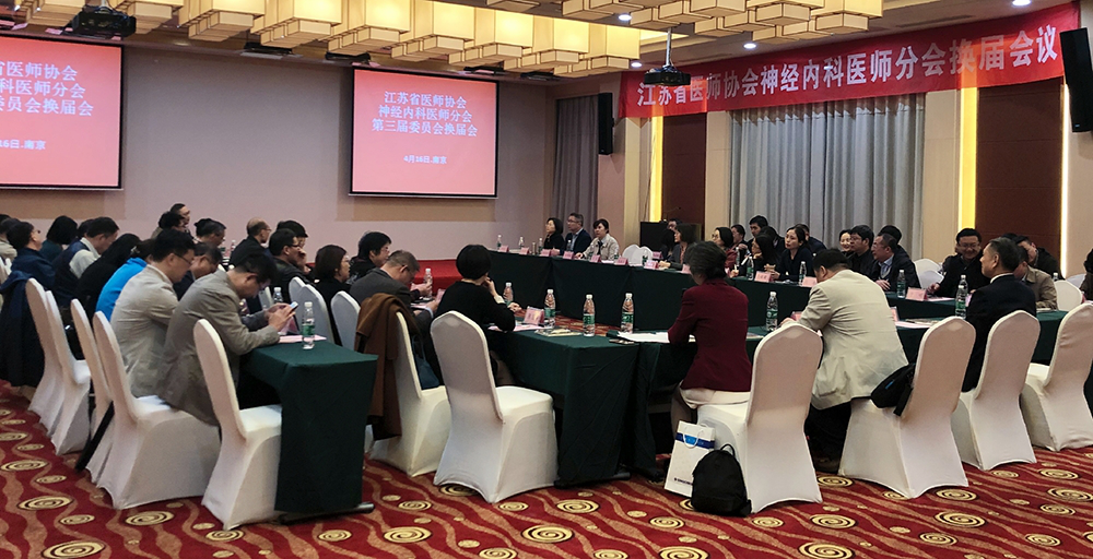 2019年4月16日江苏省医师协会神经内科医师分会换届会议在南京召开。江苏省医师协会副秘书长全钰平教授出席了会议,会议由协会会员部主持并介绍了神经内科医师分会换届的背景及筹备情况、第三届委员会委员候选人的产生、资格审查和委员候选人名单,按照程序进行选举,产生了江苏省医师协会神经内科医师分会第三届委员会,以及第三届委员会的会长、候任会长、副会长、总干事。南京市第一医院张颖冬当选为会长,南京鼓楼医院徐运当选为候任会长,江苏省人民医院万琪、南京脑科医院王小姗、苏州大学附属第二医院刘春风、南通大学附属医院柯开富、徐州医科大学附属医院耿德勤当选为副会长,南京市第一医院周俊山当选为总干事。