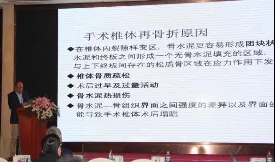 崔志明教授以《老年骨质疏松性胸腰椎骨折的外科治疗及相关问题》为主题,对骨质疏松性脊柱骨折如何进行外科干预及其手术机制做了介绍。
