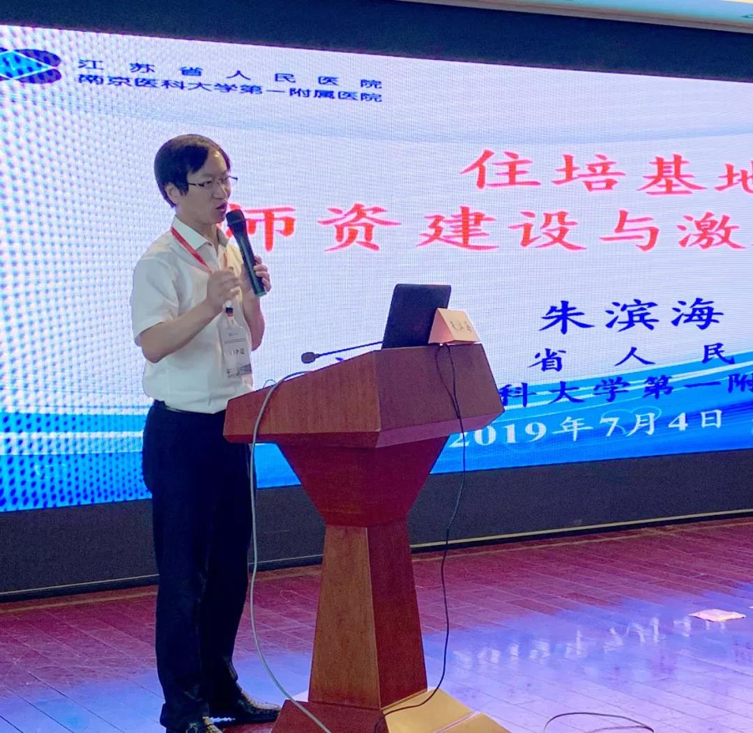 江苏省人民医院教育处朱滨海处长作《住培基地师资建设与激励机制》的主题讲座,他从认识和执行两个层面阐述以激励为重点的住培师资体系建设,分享多种科学方法对带教老师进行有效的激励,达到持续改进和提升教学质量的目的。