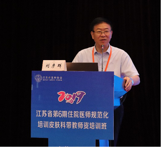 江苏省医师协会副会长兼秘书长刘彦群教授出席开幕式并致辞,江苏省医师协会皮肤科医师分会会长顾恒教授主持了开班仪式。