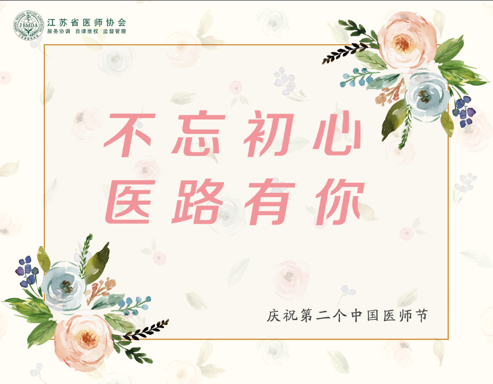 江苏省医师协会在第二个“中国医师节”当天上午在江苏省人民医院举行了“温暖医生,伴你一生”献花活动,为200名医师献上了200支献花及200张节日贺卡。江苏省医师协会副会长兼秘书长刘彦群,副秘书长全钰平,江苏省人民医院党委书记唐金海、院长赵俊、副院长占伊扬、刘云以及江苏省人民医院中层干部、医务代表共同参加了此次献花活动。