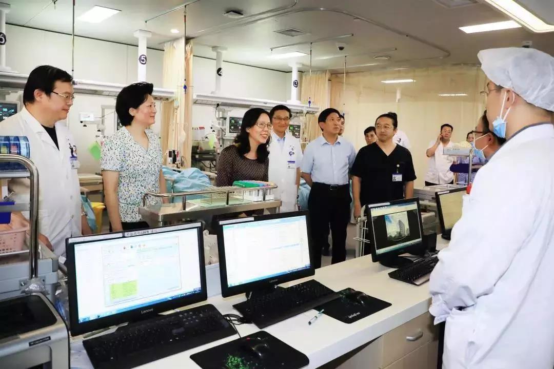 在江苏省人民医院急诊医学中心,陈星莺副省长向每一位医生握手慰问,并亲切叮嘱他们要注意身体,劳逸结合。陈星莺来到急诊抢救室、CT检查室,与当班医师亲切握手,致以慰问。陈星莺感谢每一位医师为人民健康事业的辛勤付出,她表示,广大医务人员在保障人民健康方面担当着重要职责,要在全社会倡导尊医重卫的良好氛围;同时,医务人员在新时代要努力提高医疗技术水平与医疗服务质量,积极承担公益责任与社会责任,担当神圣使命,为健康中国、健康江苏建设作出应有贡献。