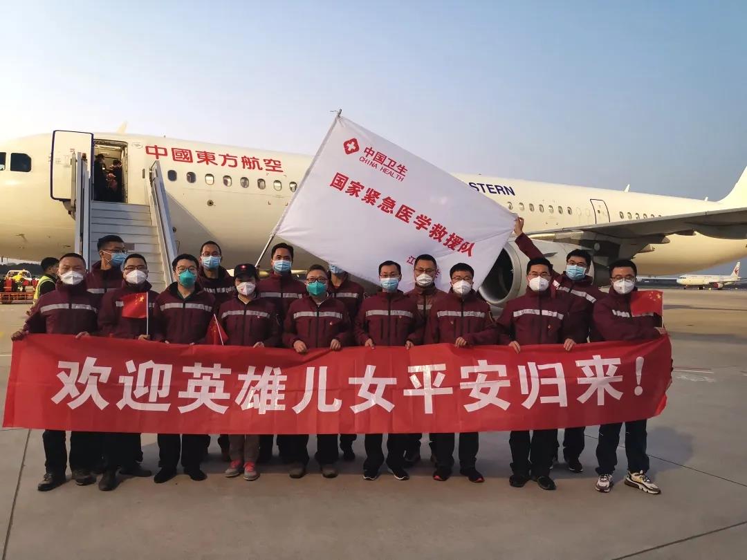 两座机场均以 “过水门”的最高礼遇迎接江苏援湖北医疗队回家