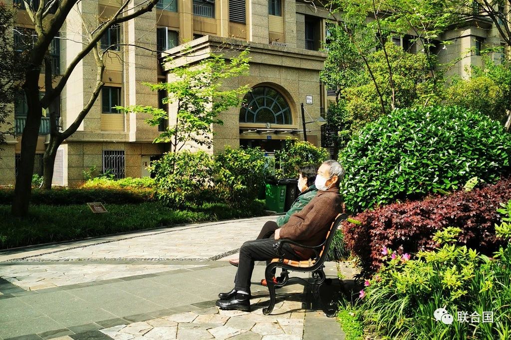图片来源:王峥 | 解封当日,一对夫妇在小区花园里晒太阳