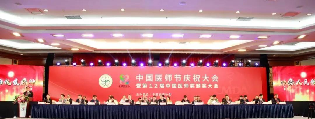 2020年8月19日下午,由中国医师协会主办的2020年“中国医师节”庆祝大会暨第12届“中国医师奖”颁奖大会在北京首都宾馆顺利举行。国家卫生健康委员会副主任、党组成员、中央保健委员会副主任曾益新,原总后勤部卫生部部长张雁灵,原国家卫生部部长高强,国家中医药管理局党组成员、副局长王志勇,原国家卫生部副部长殷大奎,中央军委后勤保障部卫生局局长房彤宇等领导,十余位院士以及全国各地的医生代表出席会议,共400余人,欢聚一堂,共庆第三个“中国医师节”。