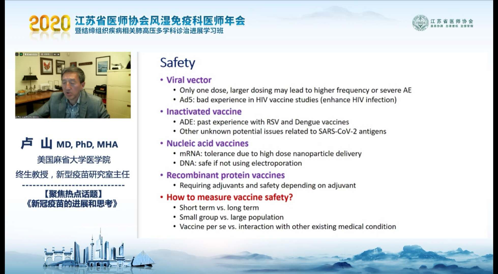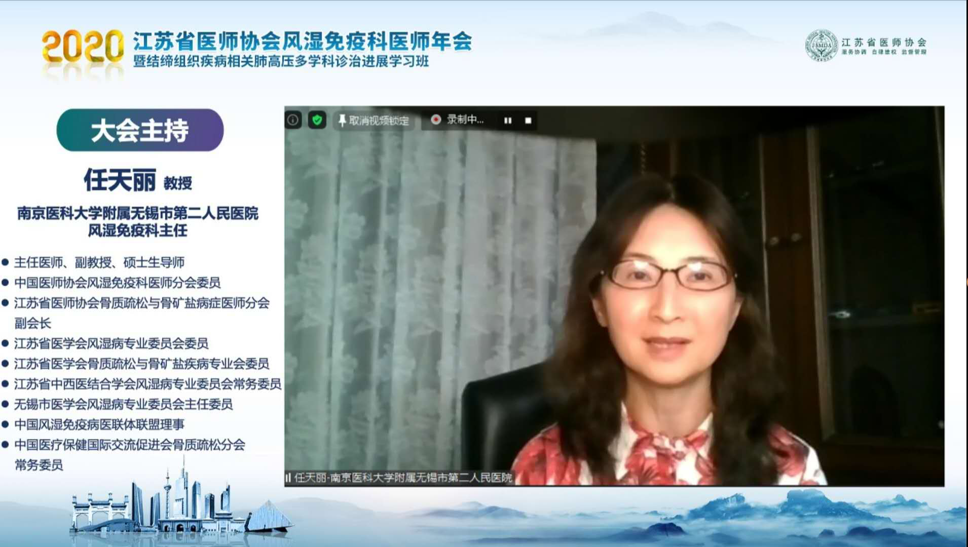 闭幕式上,江苏省医师协会风湿免疫科医师分会会长、江苏省人民医院风湿免疫科主任张缪佳教授对江苏省医师协会的支持、省内外专家的经验分享、观众的热烈参与以及会务工作者的辛勤付出表示由衷地感谢,并宣读闭幕词,她宣布2020江苏省医师协会风湿免疫科医师年会暨结缔组织病相关肺动脉高压多学科诊疗进展学习班线上会议胜利闭幕。
