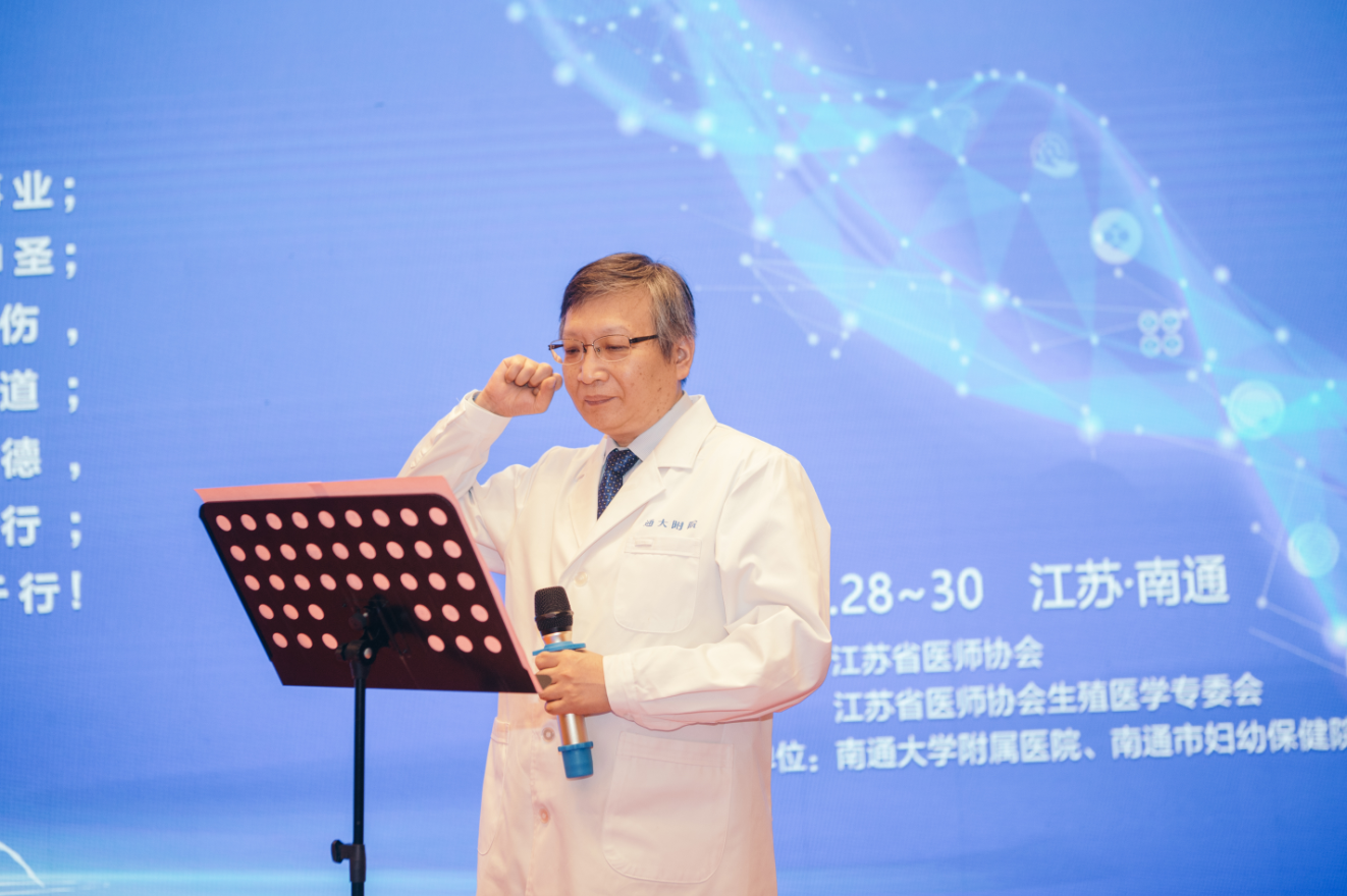 为庆祝第三个“中国医师节”,学术会议开始前,举行了庄严的医师宣誓仪式,由江苏省医师协会生殖医学专业委员会主任委员孙海翔教授领誓。
