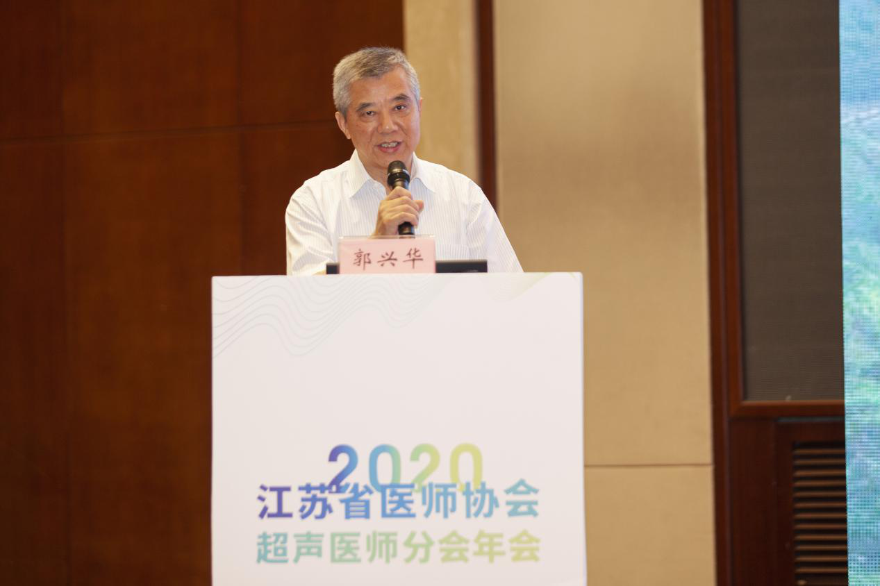 省医师协会会长郭兴华教授致开幕辞,表示此次会议是今年疫情以来江苏省医师协会超声医师分会的第一次线下会议,在医师节即将到来之际,表达了对超声医生们的敬意,他肯定了省内超声学科的水平,勉励与会代表不断提升超声医学的科研能力和学术水平。