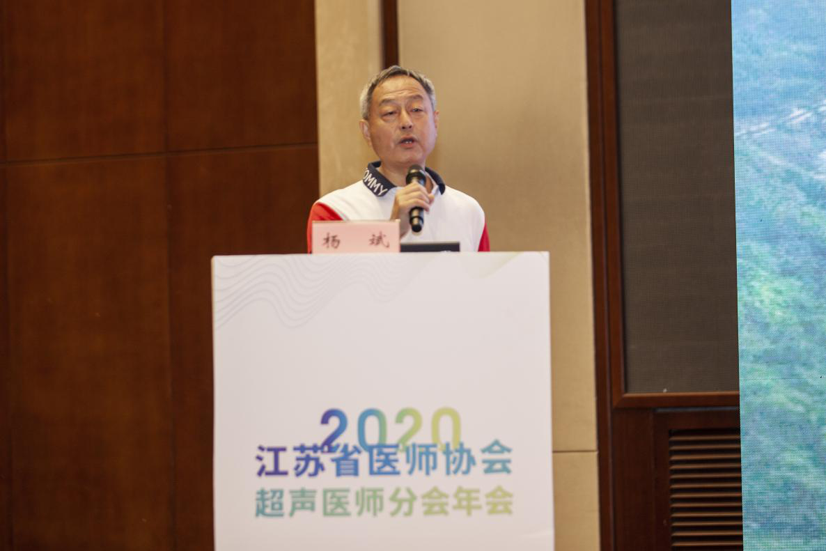 省医师协会超声医师分会会长杨斌教授介绍本次年会是省医师协会超声医师分会第二届年会,也是省超声专业会议第一次来到连云港,并表达了对江苏超声事业发展的美好期望。
