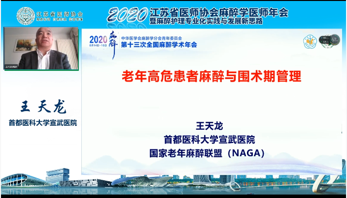 首都医科大学宣武医院王天龙教授带来《老年高危患者麻醉与围术期管理》。王教授介绍了老年高危患者麻醉与围术期管理原则,指出应当维持术前长期建立的内环境稳态和代偿状态,加速老年高危患者术后快速康复。