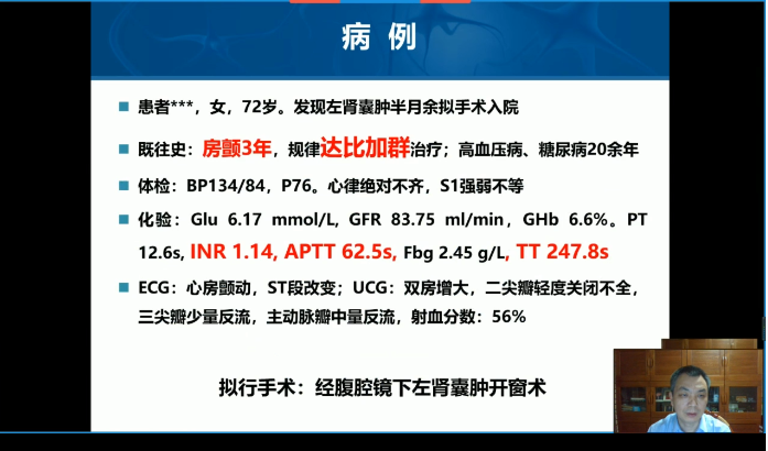 首都医科大学附属北京天坛医院韩如泉教授带来了《新型口服抗凝药围术期管理》。韩教授通过一例口服达比加群的患者介绍了口服抗凝药围术期管理的要点。