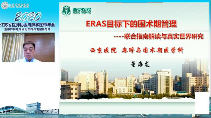 西京医院董海龙教授带来《ERAS理念指导下的围术期管理》。董教授结合指南和临床工作介绍了麻醉对实现ERAS目标的作用,主要是术前禁食、疼痛治疗、术后恢复等。