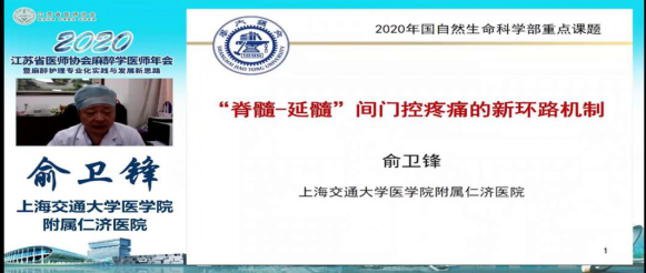 上海交通大学医学院附属仁济医院麻醉科主任、上海交通大学医学院麻醉与危重病医学系主任、中国医师协会麻醉学医师分会第四届委员会会长、世界麻醉医师联盟(WFSA)疼痛委员会委员俞卫锋教授为我们带来了《“脊髓-延髓”间门控疼痛的新环路机制》的最新研究成果,详细介绍了疼痛学说的发展历史,从机制上分析了目前疼痛研究的进展,内容丰富多彩,将复杂晦涩的疼痛产生及传导原理深入浅出的剖析出来,对我们后续的基础研究工作具有极好的学习借鉴作用。