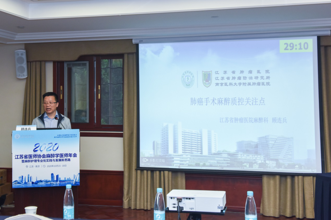 江苏省肿瘤医院顾连兵教授介绍了《肺癌手术麻醉质控关注点》,包括术前肺功能指标的解读,体位、术中呼吸管理的要点、体温保护等不同方面的注意事项。