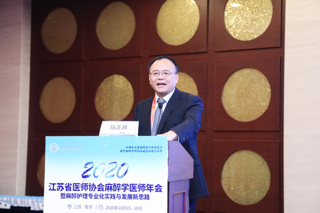 江苏省医师协会麻醉学医师分会会长马正良教授致辞欢迎各位线上线下的参会同道,感谢在疫情期间坚守在抗疫一线及工作岗位的各位江苏省麻醉医生。在国内外专家对江苏麻醉的关心及各级政府对江苏麻醉的支持下,过去三年内,协会开展了走基层精准帮扶、规培带教培训等工作,为健康江苏做出贡献。希望协会今后工作更上一层楼。