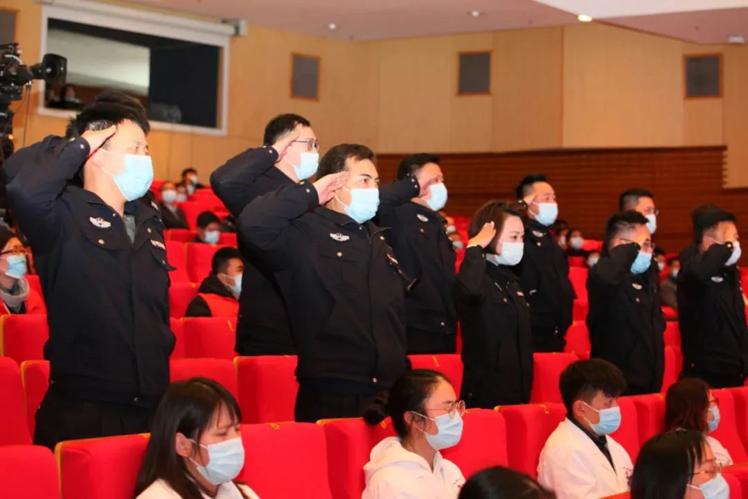 苏州太仓市公安局浏河派出所三级警长位洪明抗疫期间连续奋战20多天,地毯式排查关停各类公共娱乐场所294家。2月20日,在办理一起防疫口罩诈骗案时突发疾病,以身殉职。报告人葛浩以《定格在战疫前线的湛蓝青春》为题,讲述了他的事迹。现场民警自发起立,为英雄献上崇高的敬礼。