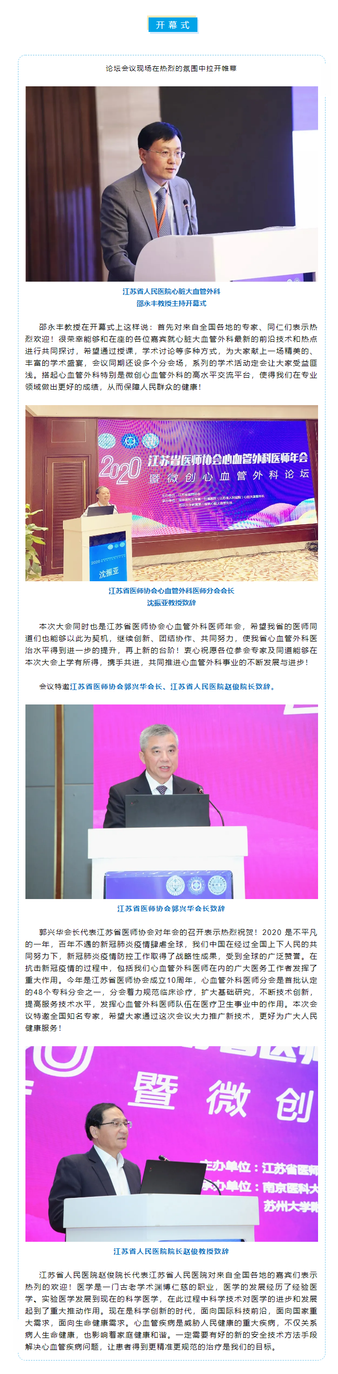 “2020年江苏省医师协会心血管外科医师年会暨微创心血管外科论坛”于2020年12月18日-20日在风景秀丽的六朝古都南京举办。会议由江苏省医师协会主办、南京医科大学第一附属医院江苏省人民医院心脏大血管外科和苏州大学附属第一医院心脏大血管外科共同承办。