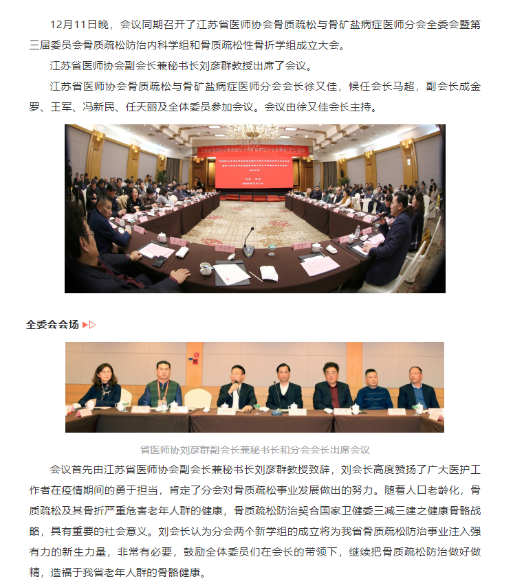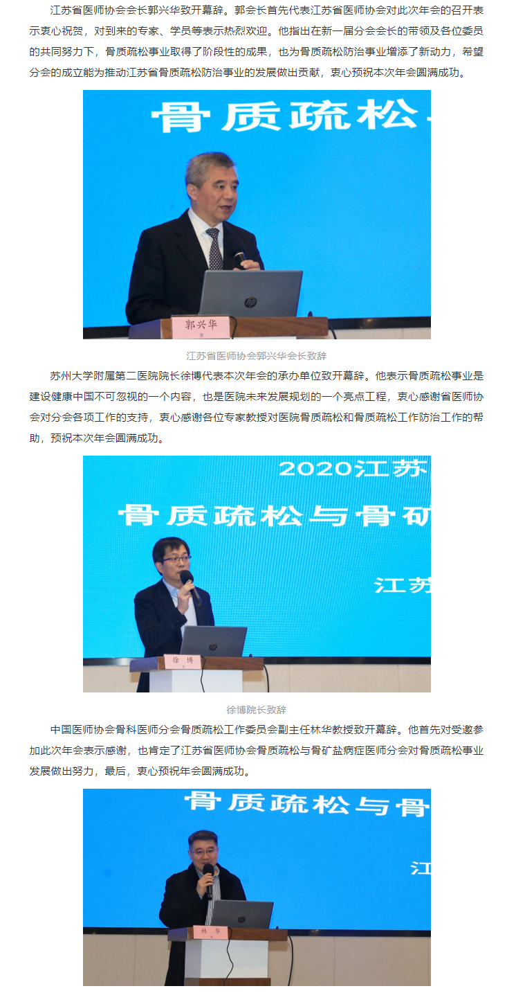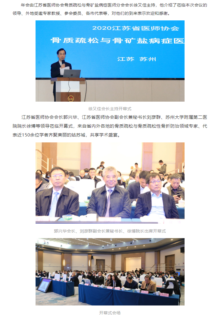 君到姑苏见,人家尽枕河。冬日的苏州,仍充满了江南的韵味。12月12日,由江苏省医师协会、江苏省医师协会骨质疏松与骨矿盐病症医师分会主办,苏州大学附属第二医院承办的2020江苏省医师协会骨质疏松与骨矿盐病症医师年会在苏州召开。