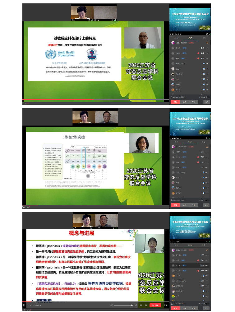 2020年11月21日,江苏省医师协会变态反应医师年会在线上召开。本次会议由江苏省医师协会变态反应医师分会和江苏省预防医学会变态反应学专业委员会(筹)联合主办,合称“2020江苏省变态反应学科联合会议”。会议邀请省内外变态反应学领域专家讲授本学科的诊治及科研最新进展,来自我省临床医学和预防医学多学科变态反应学领域专家、同仁齐聚云端,共享学术盛宴。