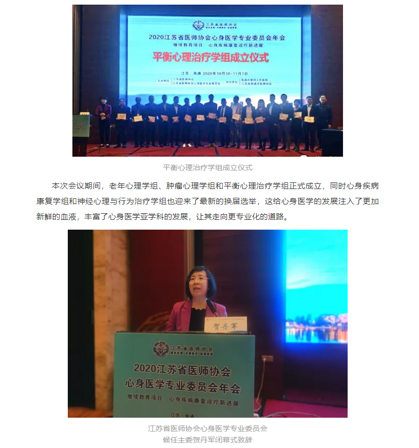 (江苏省医师协会心身医学专业委员会 供稿)