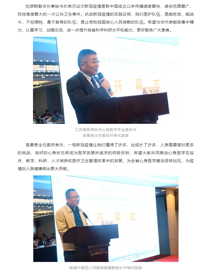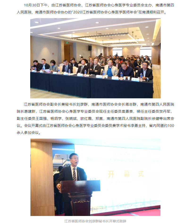 2020年江苏省医师协会心身医学专业委员会年会在南通顺利召开