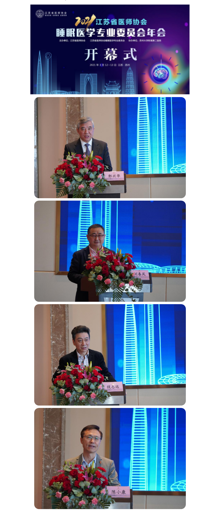 三月的苏州,春意盎然。在第21届世界睡眠日即将到来之际,江苏省医师协会第一届睡眠医学专业委员会年会在苏州成功举办。江苏省医师协会郭兴华会长、苏州市医师协会陈小康会长出席开幕式并致辞,苏州大学附属第二医院钱志远副院长、江苏省医师协会睡眠医学专业委员会刘春风主任委员致欢迎词。