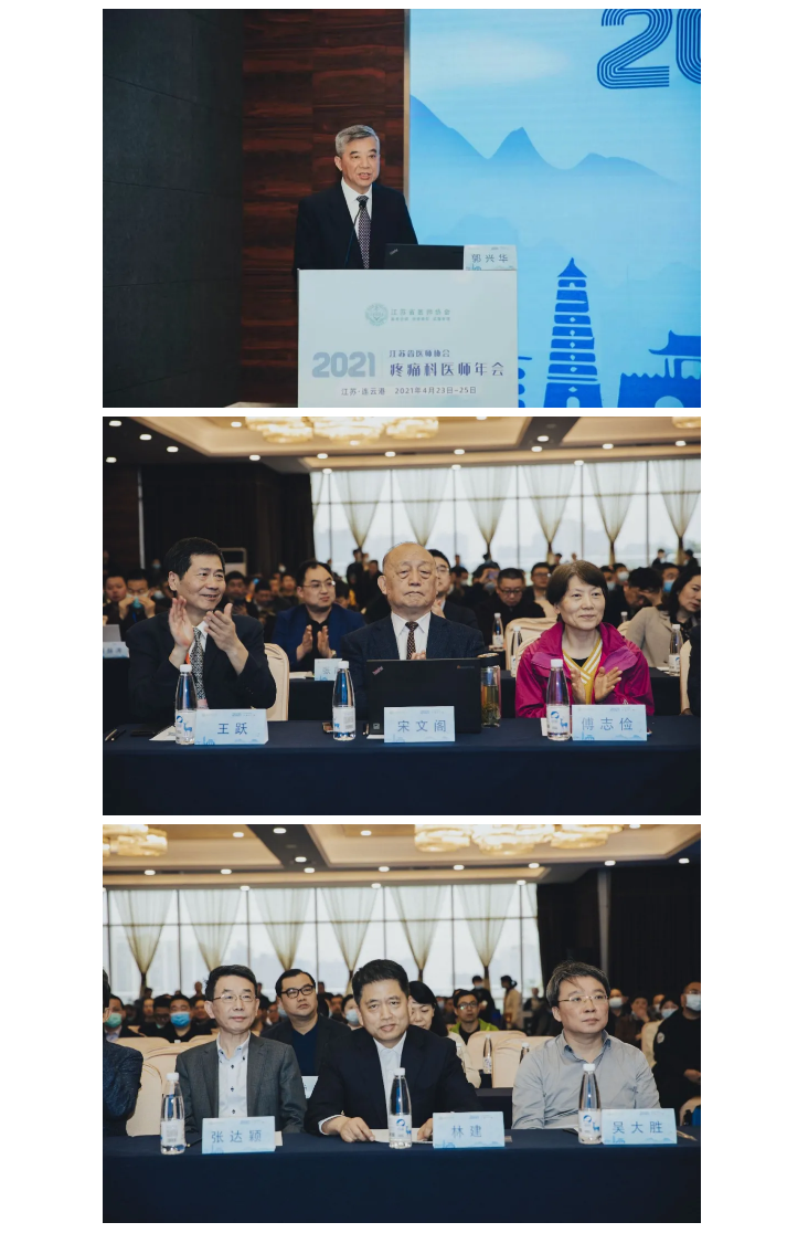 江苏省医师协会副秘书长王跃、中国医师协会疼痛科医师分会顾问傅志俭、疼痛学界元老宋文阁、中国医师协会疼痛科医师分会副会长吴大胜、以及江苏省医师协会疼痛科医师分会会长、副会长、全体委员出席开幕式。
