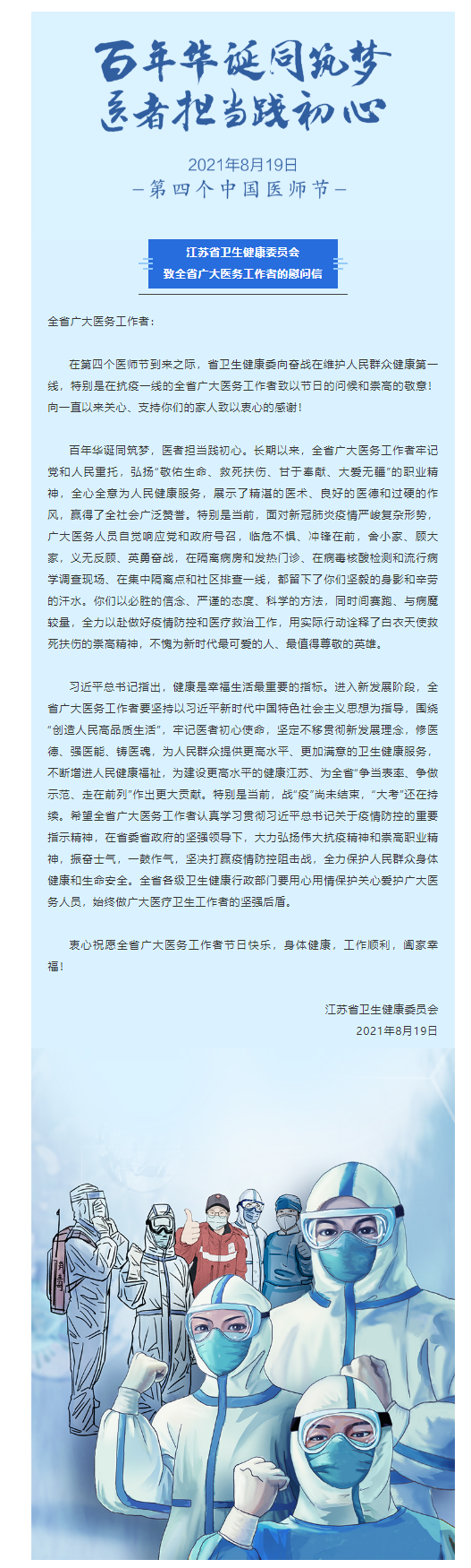 江苏省卫生健康委员会致全省广大医务工作者的慰问信