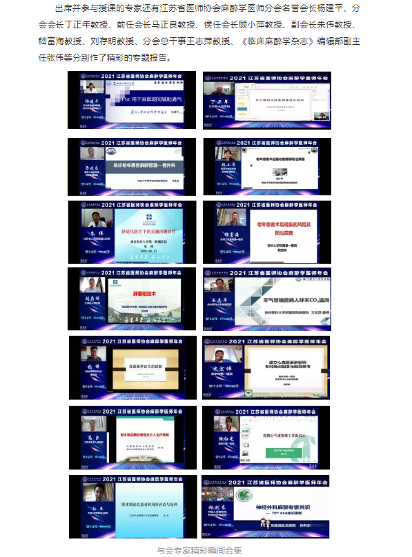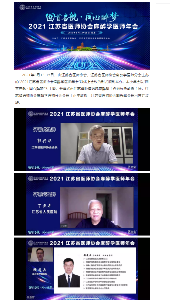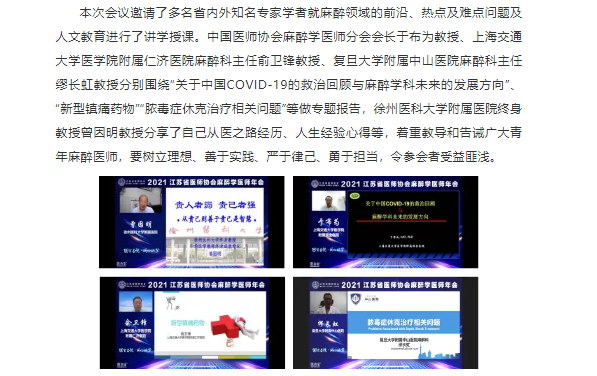 2021江苏省医师协会麻醉学医师年会成功线上举办