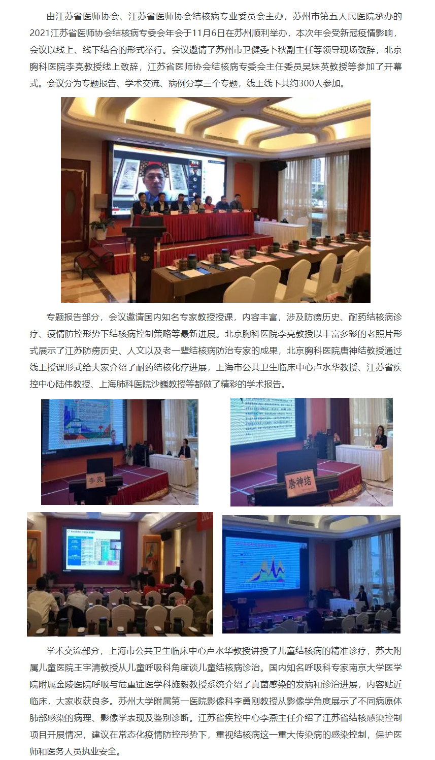 2021江苏省医师协会结核病专委会年会在苏州顺利举办