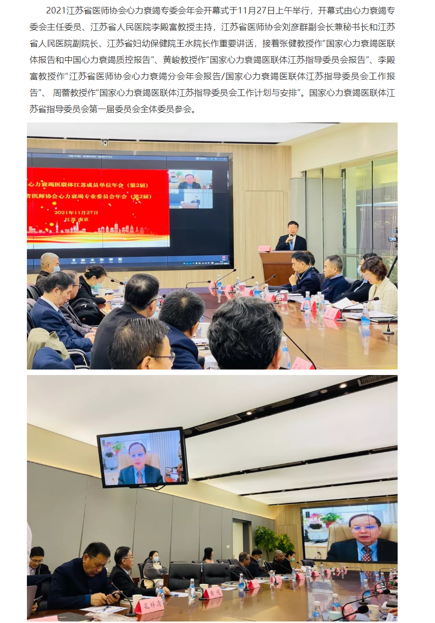 为提高江苏省心力衰竭诊治水平,打造江苏省心力衰竭规范化防治体系,由江苏省医师协会、江苏省医师协会心力衰竭专业委员会主办,南京医科大学第一附属医院(江苏省人民医院)承办的2021江苏省医师协会心力衰竭专业委员会年会暨国家心力衰竭医联体江苏指导委员会主办的江苏省成员单位年会(第2届),于2021年11月26至27日在南京市顺利举办。因受新冠疫情影响,本次会议将采取线下和线上相结合方式举行。