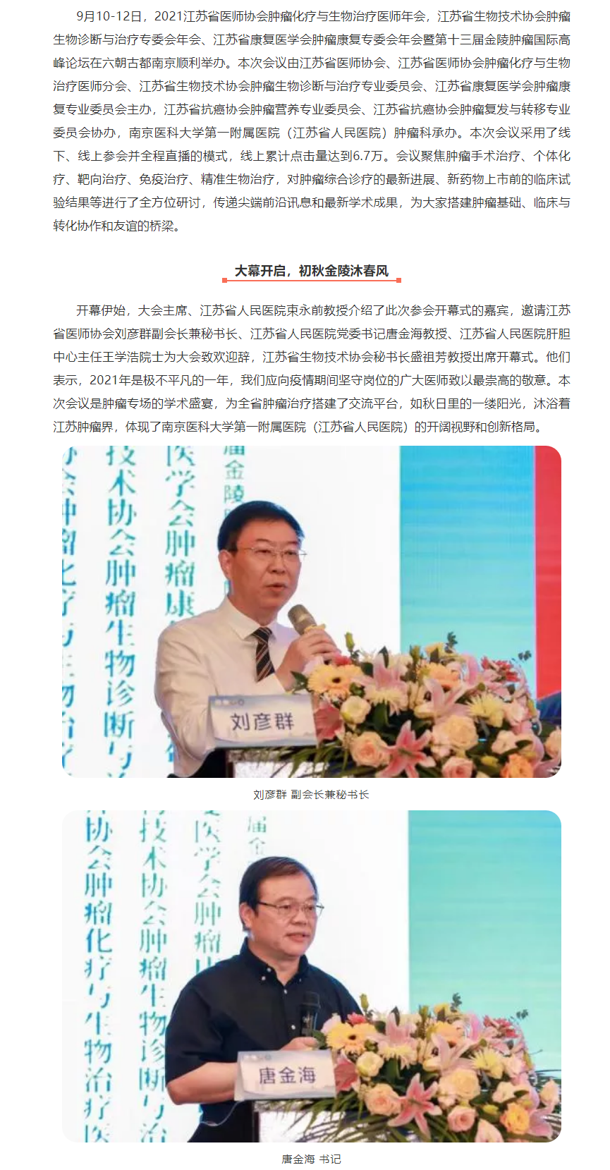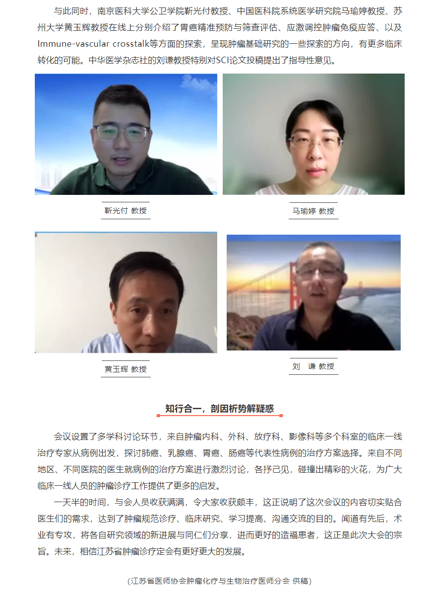 2021江苏省医师协会肿瘤化疗与生物治疗医师年会在宁顺利举办