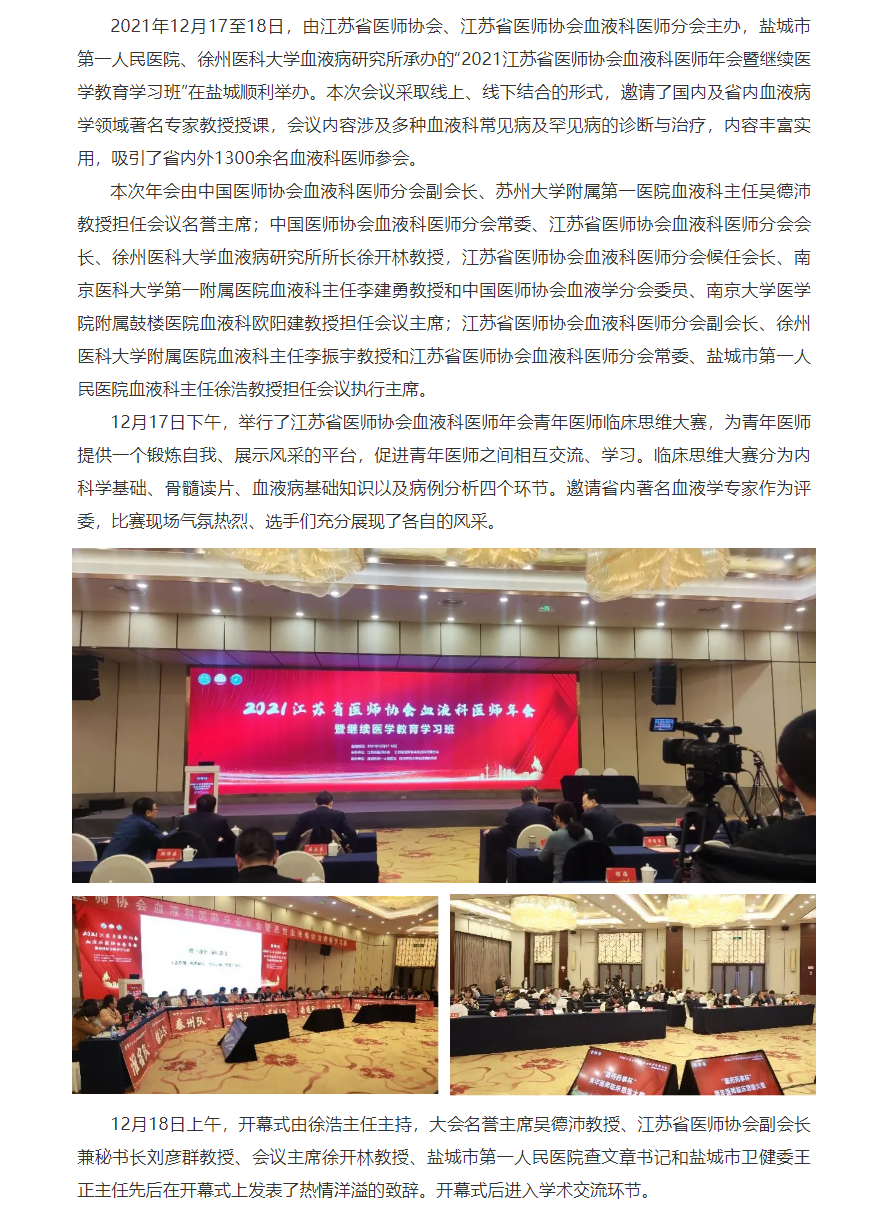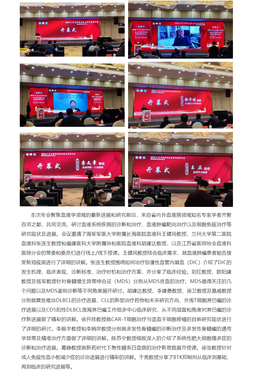 2021江苏省医师协会血液科医师年会暨继续医学教育学习班在盐城顺利举办