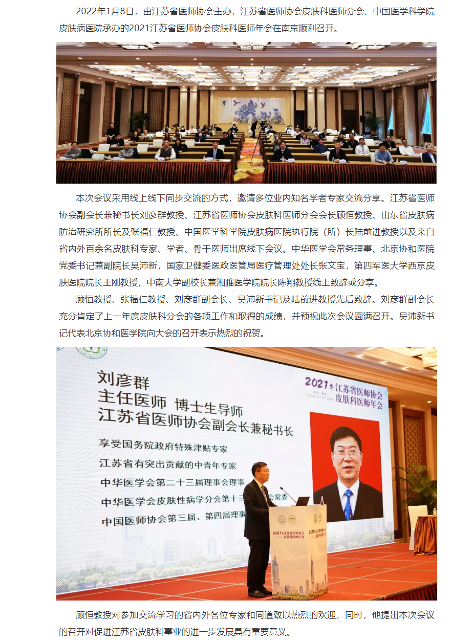 2021江苏省医师协会皮肤科医师年会在南京顺利举办