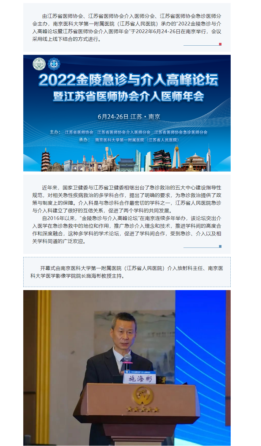 2022金陵急诊与介入高峰论坛暨江苏省医师协会介入医师年会在宁顺利举办