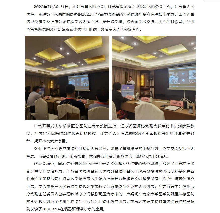 2022江苏省医师协会感染科医师年会在南通顺利举办