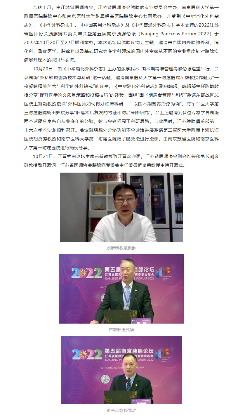 【年会动态】2022江苏省医师协会胰腺病专委会年会暨第五届南京胰腺论坛顺利举办