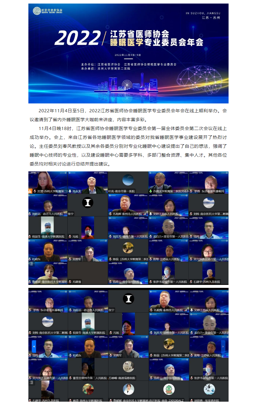 【年会动态】2022江苏省医师协会睡眠医学专业委员会年会顺利举办