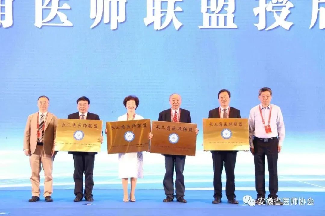 会议宣读了长三角医师联盟轮值主席、副主席、秘书长、副秘书长名单。李兆申院士、滕皋军院士为长三角医师联盟颁授铜牌,杨民副会长、杨绪斌副主任为联盟轮值主席、副主席颁发聘书,魏军锋副主席、张振粤副厅长为联盟秘书长、副秘书长颁发聘书,与会领导和嘉宾共同启动长三角医师联盟。